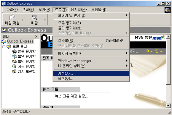 (아웃룩 익스프레스 실행 -> 도구 -> 계정 클릭)