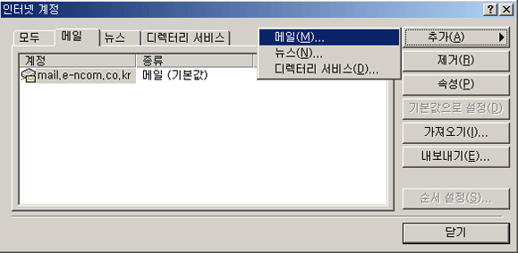 3. 여기서 추가에 메일을 클릭합니다. (추가 -> 메일)