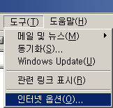 1. 도구 - 인터넷옵션을 클릭한다